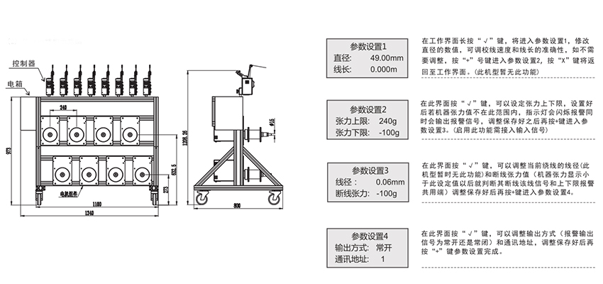 伺服放線器采用主動送線方式替換傳統(tǒng)的被動方式,通過對馬達(dá)速度的控制來達(dá)到穩(wěn)定張力值的目的,并帶有張力反饋穩(wěn)定系統(tǒng),能自動實(shí)現(xiàn)張力的穩(wěn)定平衡。在放線時線軸從滿軸到小軸張力都能保持不變,相比傳統(tǒng)機(jī)械的放線器減少了調(diào)節(jié)張力的次數(shù),提高產(chǎn)品的質(zhì)量。
