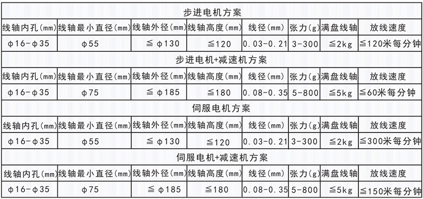 該系列具體型號及配置見下方表格,用戶根據(jù)自用線徑及軸重和張力范圍選擇合適的方案及型號